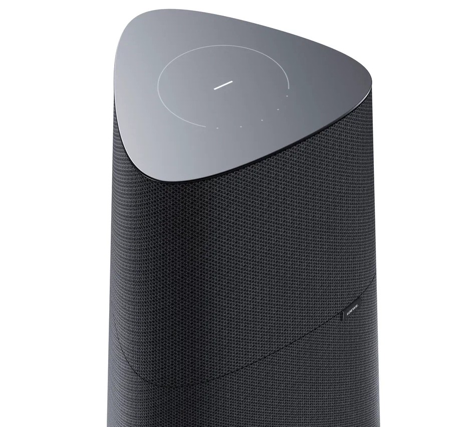 Элегантный дизайн с акустическим тканевым покрытием и стеклянной поверхностью с сенсорным управлением. |