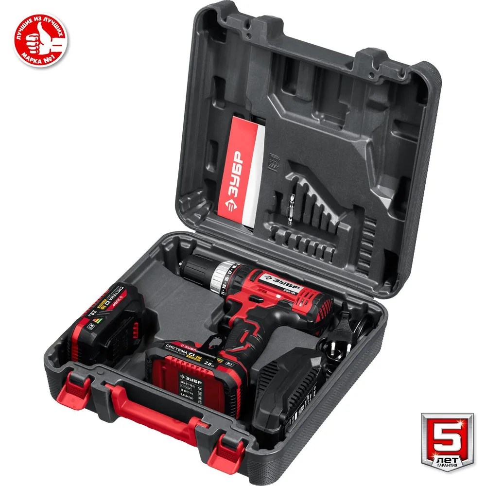 Дрель-шуруповерт аккумуляторная, ЗУБР, 2 АКБ, кейс (дшл-185-22)
