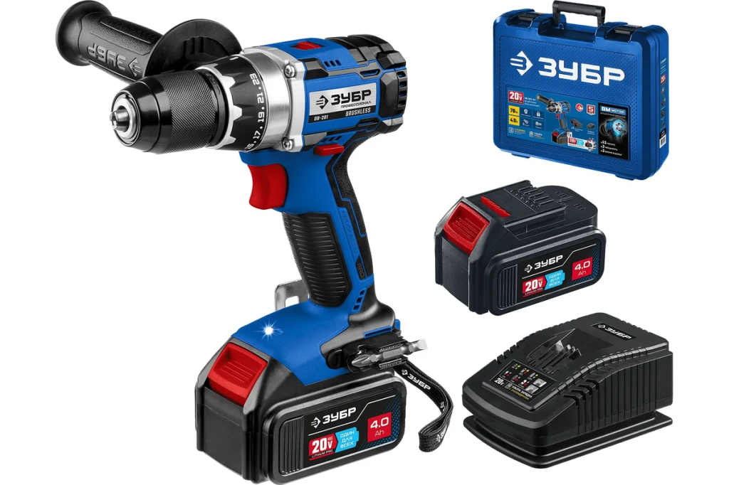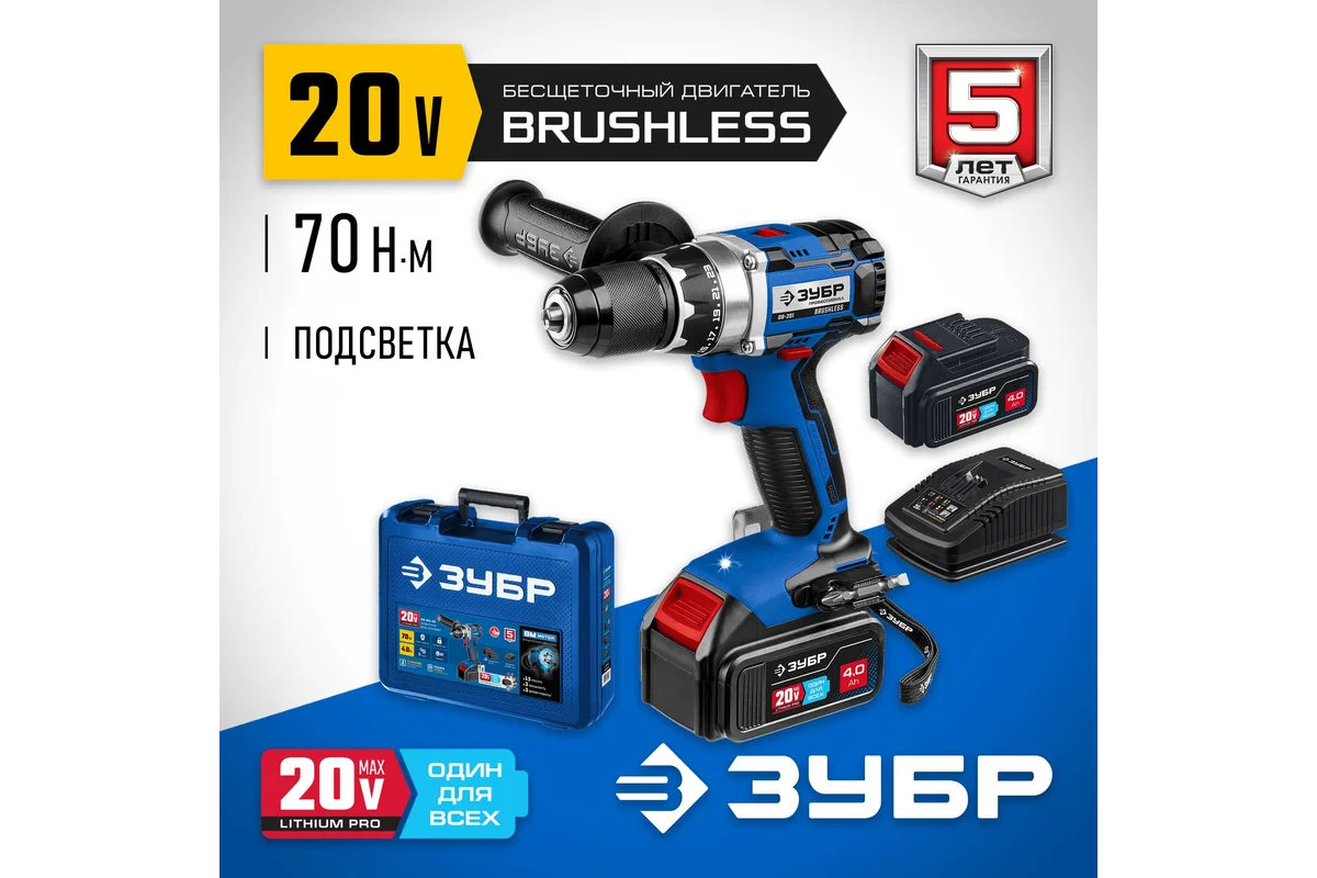 ЗУБP T7, 20 В, 70 H·м, 2 АКБ (4 А·ч), бeсщeтoчнaя дрeль-шуpуповеpт, кeйс, Пpoфессиoнaл (DВ-201-42)