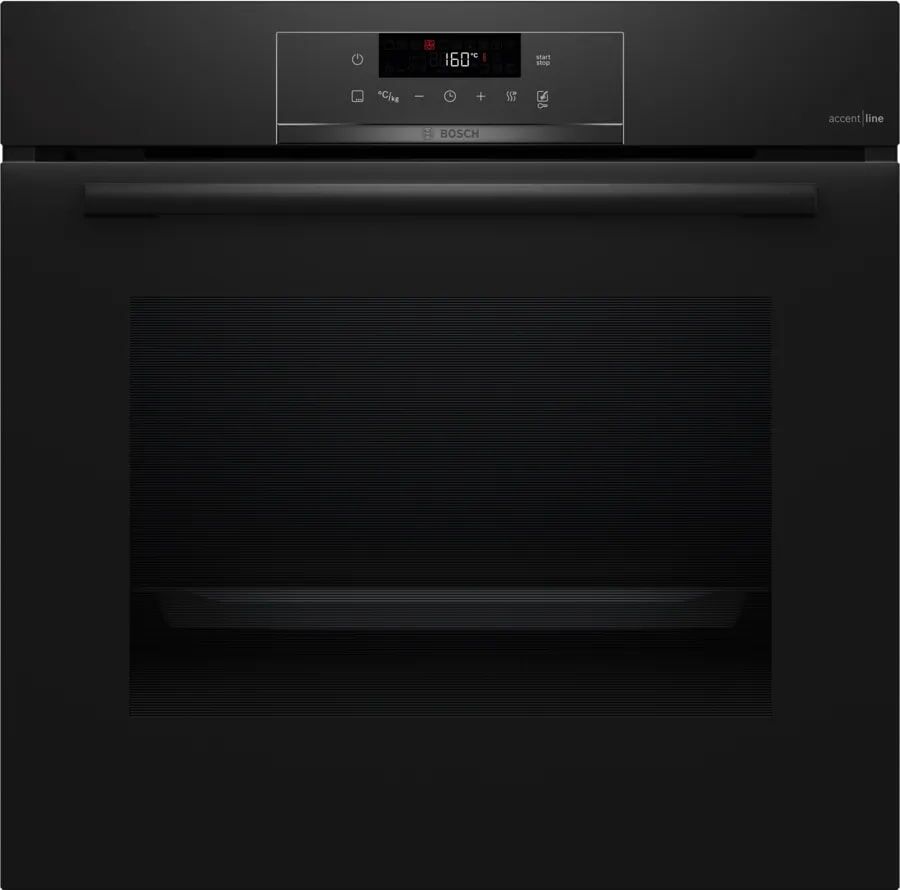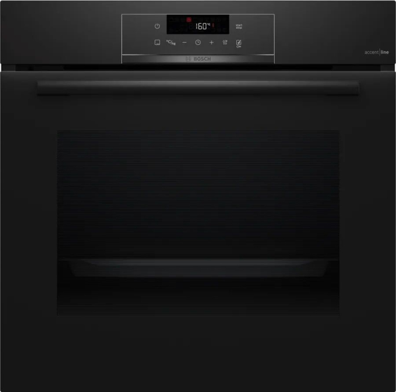 Духовой шкаф Bosch HQA472BB3 в чёрном исполнении подчёркивает современную кухонную эстетику и лаконичность интерьера: строгая лицeвая панель с чёрной фурнитурой формирует аккуратный акцент в составе мебели, оставляя пространство визуально лёгким. Фасад выполнен так, чтобы интеграция в нишу шириной 60 см выглядела цельной — компактные габариты 59,6 × 59,4 × 56,7 см позволяют аккуратно встроить прибор в стандартную конфигурацию, а размеры ниши для встраивания 60–60.4 × 56–56.8 × 55 см делают установку предельно предсказуемой. Внутренний объём 71 л сочетает способность готовить крупные блюда с удобством размещения нескольких уровней одновременно, что особенно важно при выборе техники для семьи или приёма гостей.