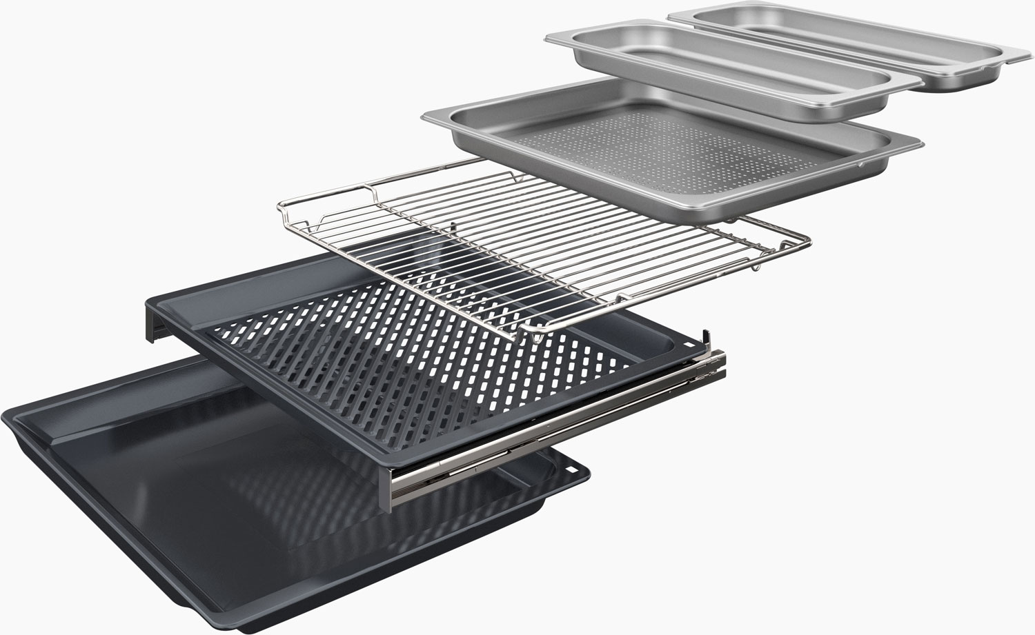 Особенно выделяются «умные» помощники: термощуп PerfectRoast сам определяет готовность мяса, а сенсор PerfectBake заботится о том, чтобы бисквит не пересох. Выдвижные направляющие скользят плавно, даже когда противень полный, а функция пара добавляет сочности без лишних усилий. Безопасность на высоте: дети не включат духовой шкаф случайно, а дверца остаётся тёплой, но не горячей — можно не бояться за маленьких помощников на кухне.