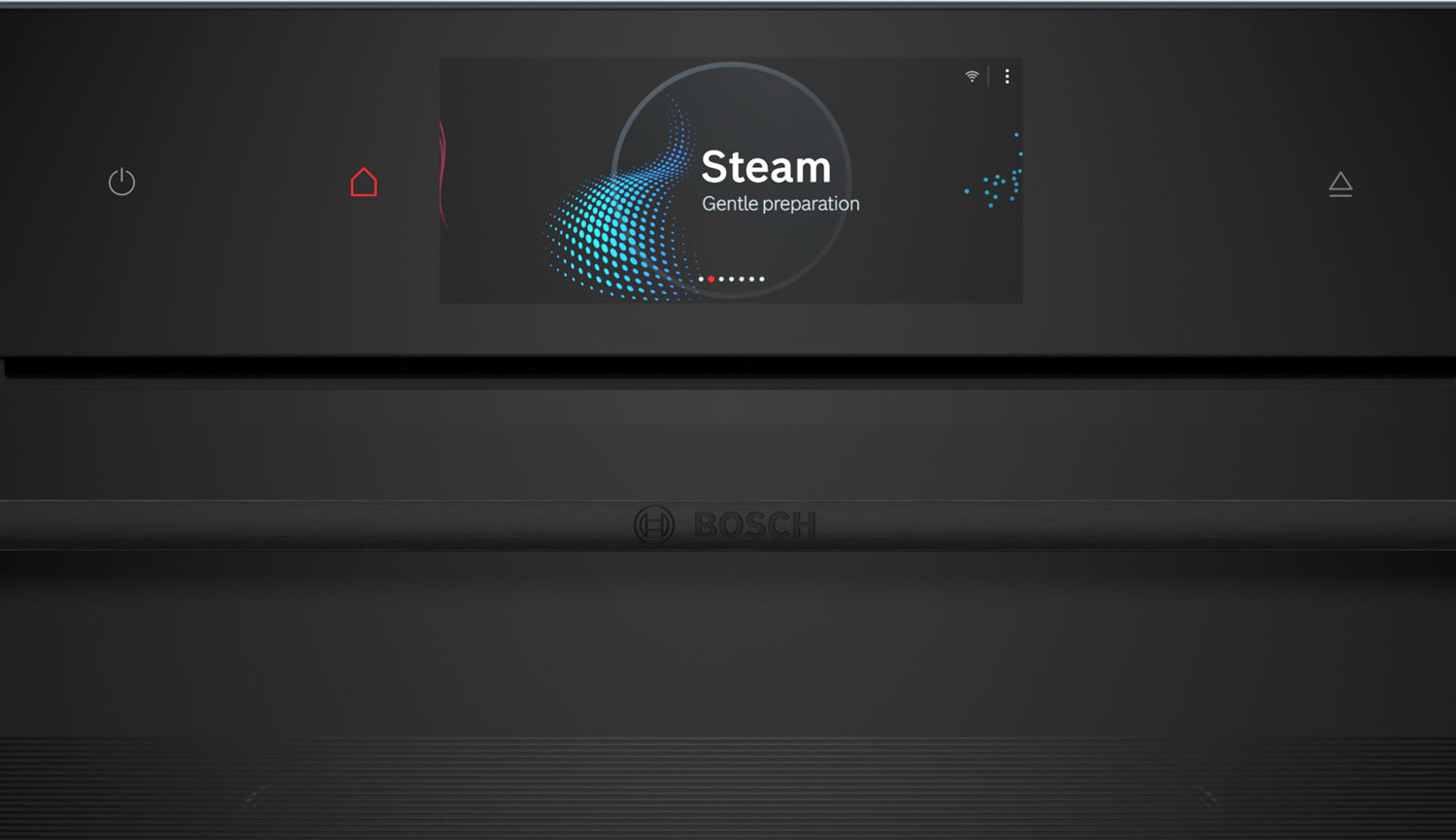 Всё управление — через сенсоры и яркий цветной экран, на котором чётко видно время, режим и температуру. Не нужно листать инструкцию: духовка интуитивно понятна с первого касания. А если вы в другой комнате или уже в пути домой — легко запустить разогрев или проверить стадию готовки через приложение Home Connect. Это не «умная игрушка», а реальное удобство, которое экономит время и нервы.