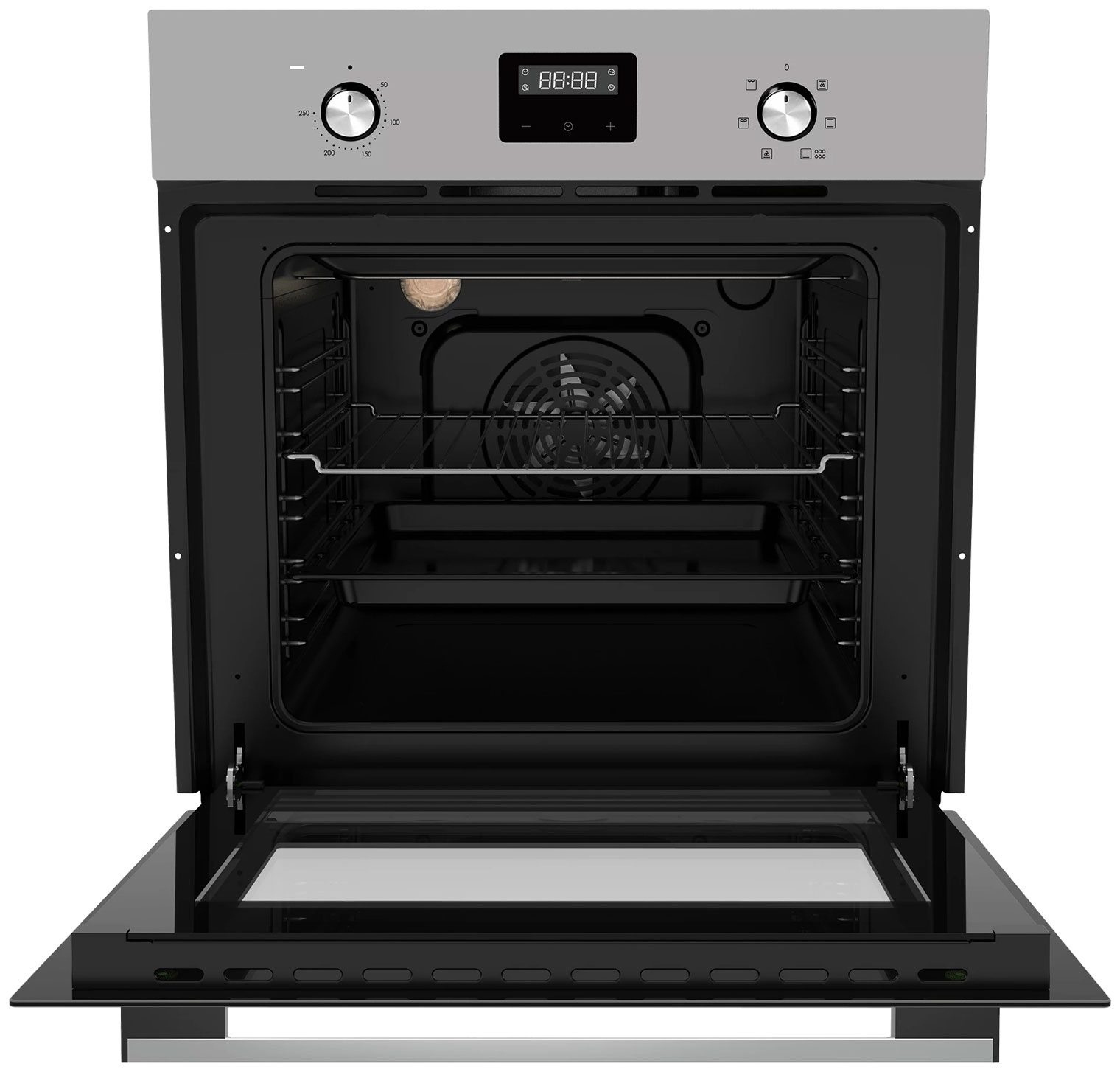 Электрический духовой шкаф Candy COXP06NBX объемом 62 л оборудован поворотными и сенсорными переключателями, которые открывают доступ к 6 программам. Опция гриля с конвекцией распределяет теплый воздух по всей камере для равномерного запекания и формирования хрустящей корочки на блюдах.