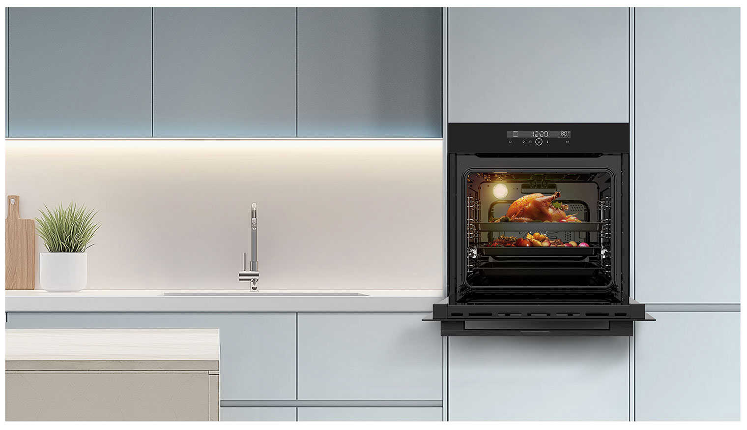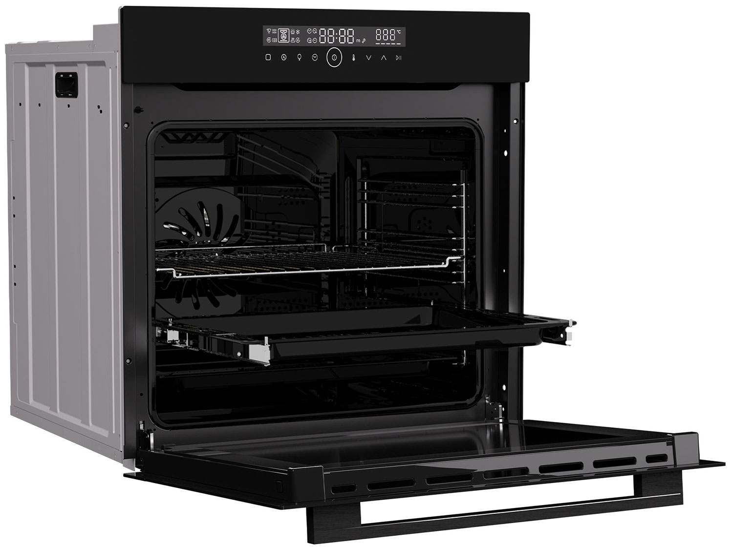 Электрический духовой шкаф Candy COXT12LATBB поддерживает режим очистки паром для расщепления стойких пятен. Кнопка блокировки ограничивает доступ детей к параметрам. Встроенный вентилятор охлаждает устройство до комнатной температуры после выключения. Сенсорная панель управления служит для регулировки температуры от 30 до 310 °C.