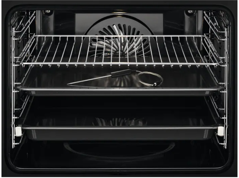 два противня, одна решётка, термощуп и набор для приготовления на пару |