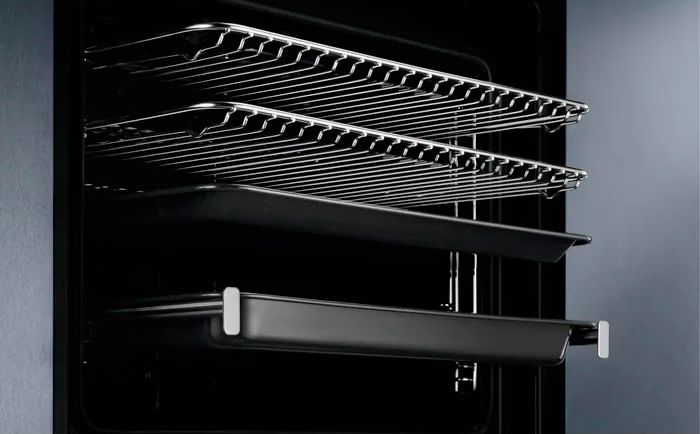 ? Чем больше объем духового шкафа, тем большее количество противней и решеток можно использовать.