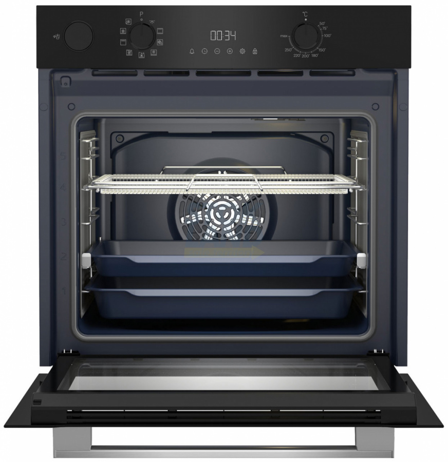 Усовершенствованный механизм плавного закрытия дверцы поможет справиться с неудобствами при эксплуатации стандартных духовых шкафов.