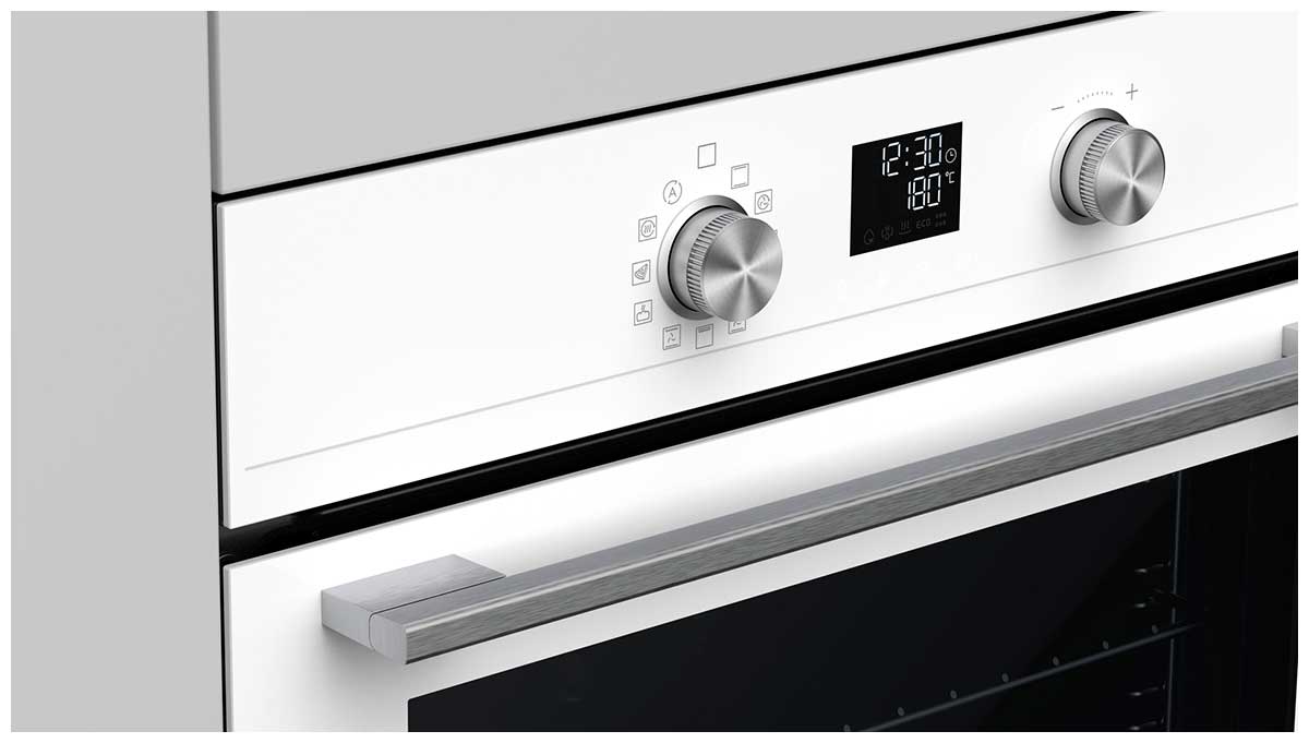 Панель с дисплеем обеспечивает простоту управления и контроля. Утапливаемые поворотные переключатели облегчают уход и защищают от изменения установленных настроек. Тройное стекло с теплоотражающим покрытием обеспечивает безопасность при контакте с внешней стороны. Эмалевое покрытие и специальный режим Aquactiva гарантируют простую очистку внутренних стенок от загрязнений. Телескопические съемные направляющие упрощают извлечение противней. В комплекте с духовым шкафом Haier HOQ-K4AAN3WB поставляются 2 противня и решетка.