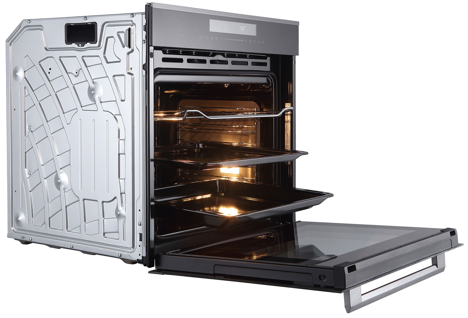 Две лампы подсветки, установленные на боковых стенках, создают тот необходимый поток света, позволяющий увидеть все детали приготовления блюда от цвета корочки до степени прозрачности сока.