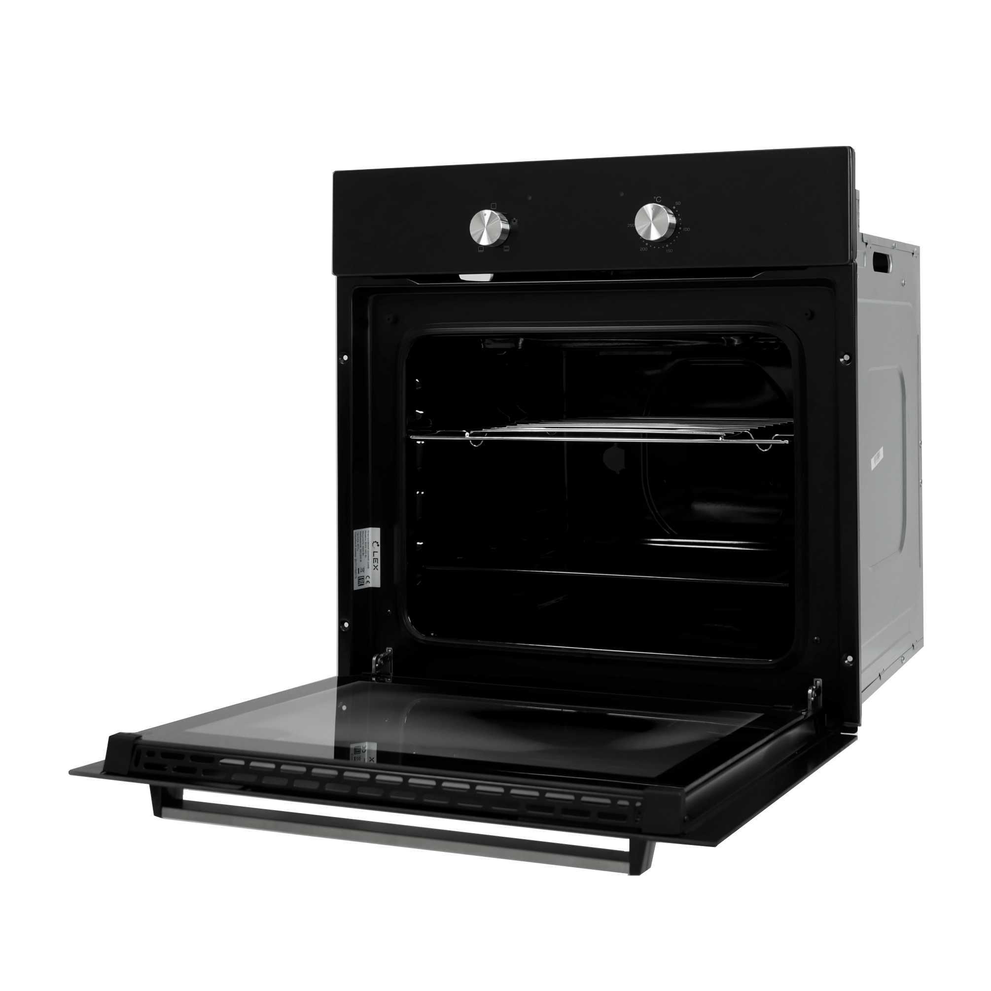 Откидная дверца наиболее комфортна в использовании. В ней установлено двойное стекло, оно отлично противостоит высокой температуре и снижает потерю жара. Вместе с Lex EDM 040 BL предоставляется решетка и противень.