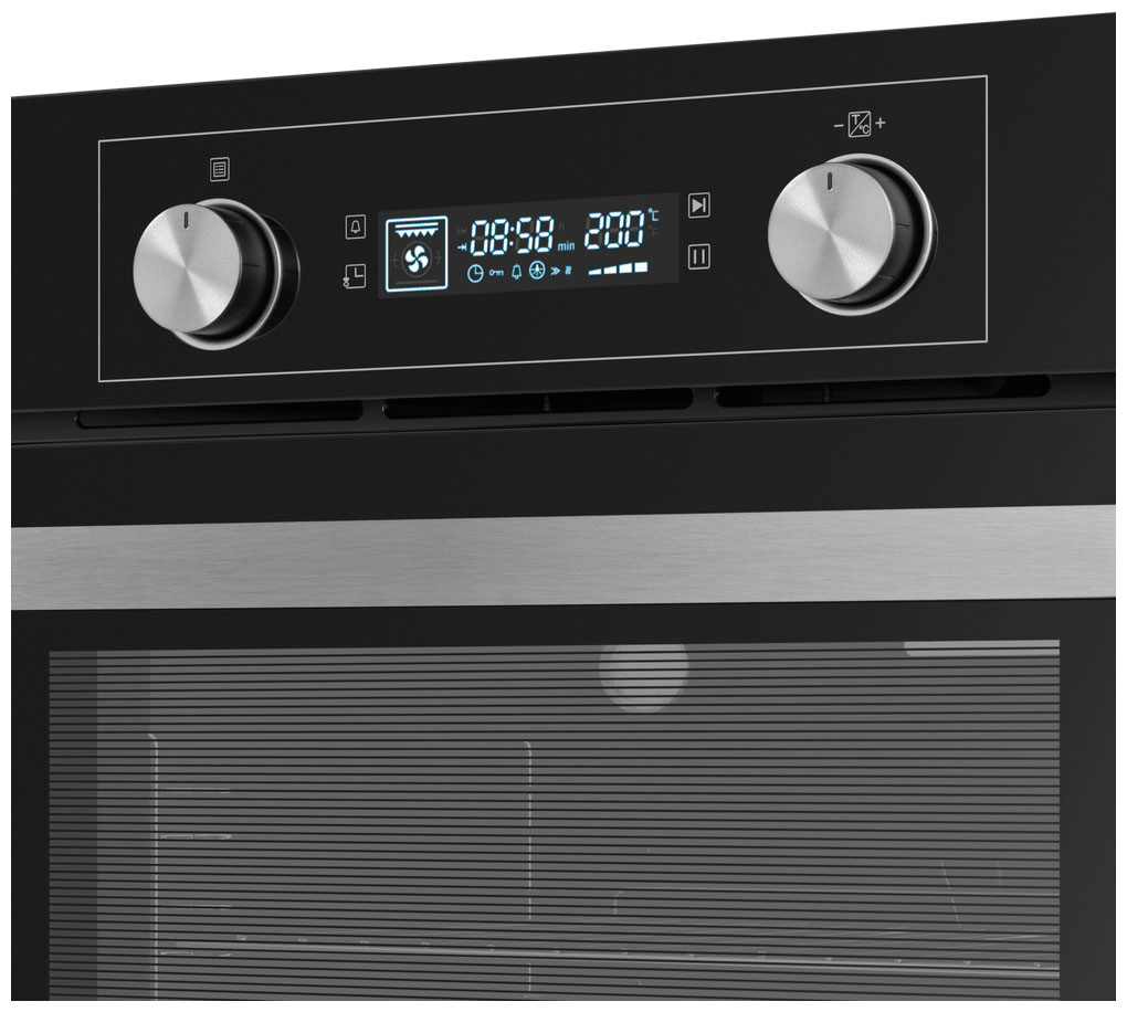 Большой объём 60 л. При таком объёме вы можете готовить одновременно несколько блюд, разместив решетку или противень на одном из 5 уровней боковых направляющих. Поворотные ручки PUSH PULL в сочетании с сенсорным управлением обеспечивают комфортное и наиболее точную регулировку параметров приготовления. Большой цифровой дисплей духового шкафа отображает всю необходимую информацию. Класс энергопотребления А - это гарантия эффективности устройства при минимальном расходе электроэнергии. Вы можете больше не думать о счетах за электроэнергию, а только наслаждаться приготовлением вкуснейших блюд в нашем духовом шкафу. Благодаря конвекции вы можете установить противень на любом уровне и получить равномерное пропекание, хрустящую корочку. Тепло распределяется по всему объёму духового шкафа, обеспечивая равномерное приготовление блюд.