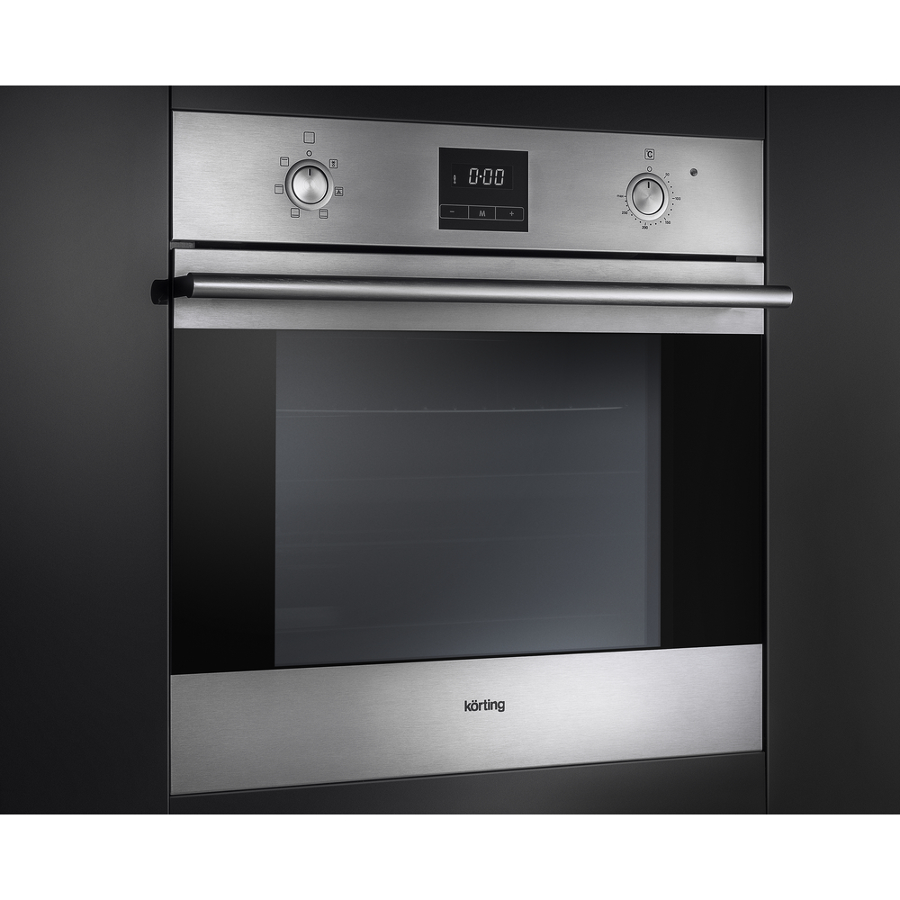 Дисплей Cold White белого цвета, который легко читается под любым углом. Тройное остекление дверцы. Специальные материалы стекла обладают свойствами защитного экрана, удерживающего тепло внутри камеры. Утапливаемые поворотные регуляторы. При нажатии на поворотный регулятор, он фиксируется внутри панели управления, создавая прямую и ровную поверхность. Кислостойкая эмаль лёгкой очистки «Metallic Grey». Эмаль облегчает чистку внутренних стенок духового шкафа и соответствует самым высоким классам устойчивости к агрессивным воздействиям. Электронный таймер. Можно установить время продолжительности приготовления, время отложенного старта и акустический сигнал, который подаётся по истечении заданного времени даже, если духовой шкаф не находится в режиме приготовления. Система охлаждения. Комплектация: противень для выпечки, глубокий противень, хромированная решётка. |