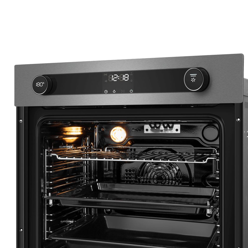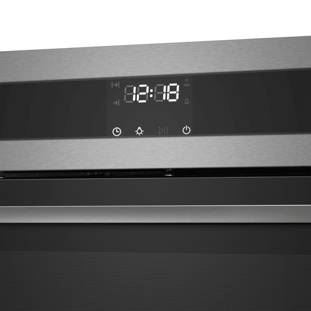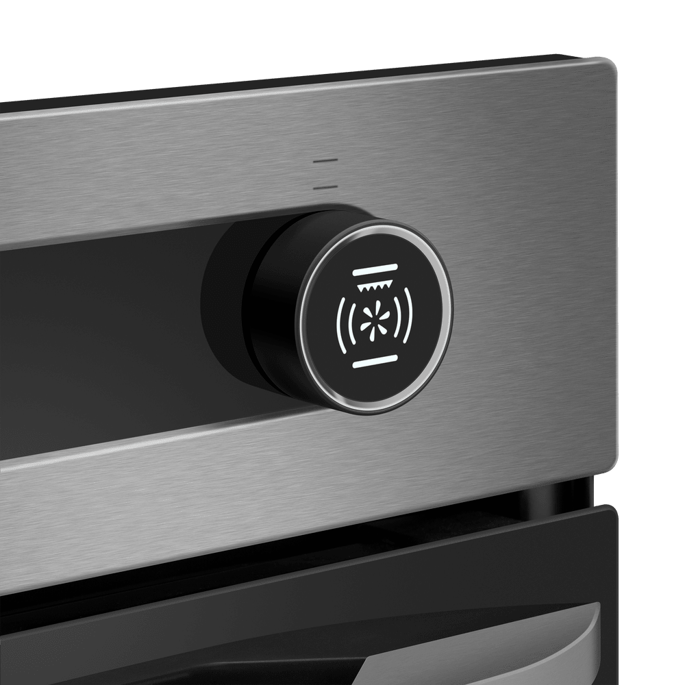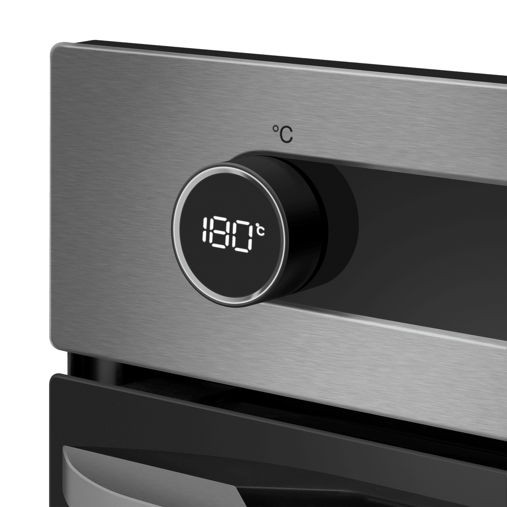 Независимая электрическая духовка в корпусе из нержавеющей стали сочетает стильный внешний вид и продуманную эргономику. Передняя панель выполнена в металлическом оттенке с комбинированной фурнитурой из нержавеющей стали, трёхслойной стеклянной дверцей. На верхней панели управления находятся два поворотных регулятора с оригинальной подсветкой для выбора режима работы и температуры, а между ними дисплей с часами и таймером в сочетании с сенсорными кнопками TouchControl. Внутренняя камера объёмом 76 л предоставляет простор для больших противней и размещения нескольких блюд одновременно, а освещение упрощает визуальный контроль без открытия дверцы.