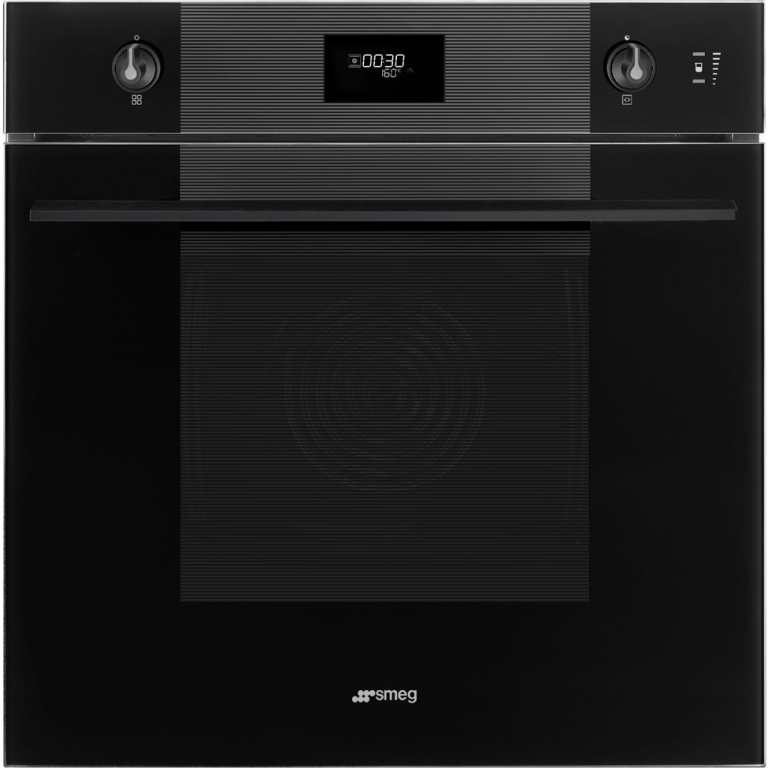 Духовой шкаф Smeg SO6101S2B3 оснащен сенсорным дисплеем, на нем отображается время таймера, также имеется 2 поворотных регулятора. Имеются 11 режимов нагрева среди них, есть размораживание по времени время для разморозки определяется автоматически. Система очистки происходит с помощью пара в специальный отсек объемом 0.8 л. наливается вода.