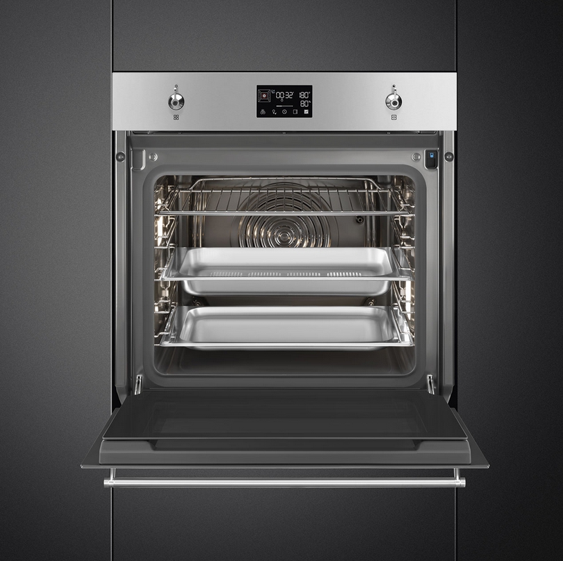 Духовой шкаф Smeg SO6302S3PX из коллекции Classica выполнен в цвете «Нержавеющая сталь» с черным стеклом Eclipse. На ярком дисплее отображается вся необходимая информация — установленный режим, время приготовления, выбранная температура, благодаря чему следить за приготовлением стало еще проще. 3 стекла в дверце и тангенциальная система охлаждения гарантируют безопасность эксплуатации.