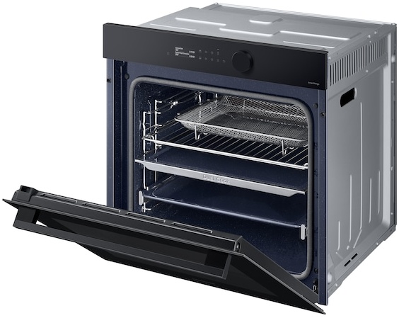 Дверь электрического духового шкафа Samsung NV7B5645TAK/WT оборудована доводчиком для плавного и бесшумного закрытия. Покрытие представлено керамической эмалью. Материал не выделяет небезопасных соединений и легко очищается от любых пятен. Программируемый таймер выключает прибор в обозначенный пользователем временной отрезок. Дисплей отображает заданные параметры.