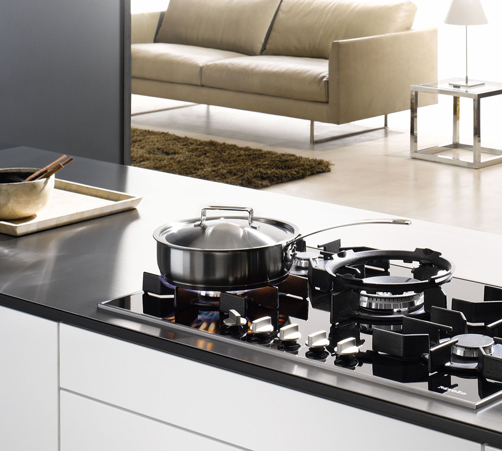 Газовая варочная панель Miele KM 3054-1 — стильная и современная модель с поверхностью из черной стеклокерамики. Рамки из нержавеющей стали прекрасно дополняют дизайн плиты и делают её удобной в эксплуатации, а чугунные решётки с эмалированным покрытием ComfortClean можно мыть в посудомоечной машине без риска появления ржавчины. Устройство имеет кухонный будильник, который идеально подходит для контроля процесса приготовления и не даст пользователю забыть, что пора, например, снимать кипящее молоко. Его можно использовать для отслеживания действий, не связанных с варочной панелью, таких как заваривание чая.
