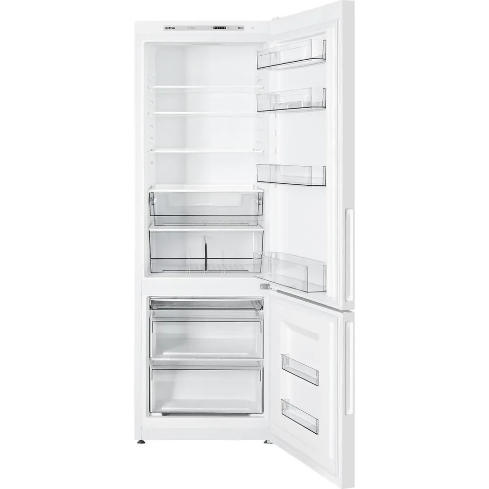Холодильник Atlant ХМ-4613-101 предлагает общий объем 381 л, из которых полезный объем составляет 336 л. Внутри расположены морозильная и холодильная камеры с зоной свежести.