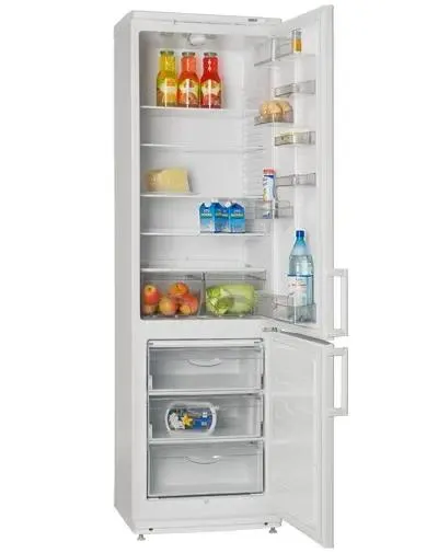 Холодильник Атлант ХМ 4026 000 в корпусе белого цвета оснащен двумя камерами. Холодильная камера на 278 л имеет четыре отдельных стеклянных полки, которые можно переставлять для удобства, увеличивая пространство для расположения продуктов. Нижнее пространство в морозильном отсеке вмещает три прозрачных ящика для овощей, мяса и полуфабрикатов, а также прочих продуктов в заморозке.