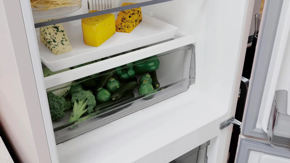 Внутреннее освещение реализовано с помощью встроенных светодиодов, которые практически не выделяют тепла и светят ярко, потребляя минимум электроэнергии. Если дверца очень долго находится в открытом положении или закрыта неплотно, автоматически сработает звуковое оповещение, что позволит избежать порчи колбасы, сыра и других скоропортящихся продуктов.