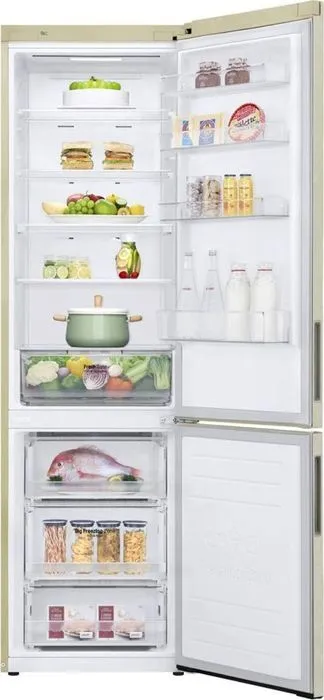 Панель холодного воздуха в верхней части холодильника обеспечивает на 32% более быстрое и равномерное охлаждение, чтобы ваши продукты сохранялись свежими еще дольше. Уровень шума в холодильниках LG DoorCooling+ 36 дБ, что на 25% ниже, чем в предыдущих моделях. Тихая и надежная работа, чтобы ничего не нарушало вашего спокойствия дома. Усовершенствованная складная полка теперь имеет два этапа сложения, что позволяет хранить крупные и габаритные продукты или блюда. С нулевым зазором холодильник LG можно ставить вплотную к стене и открывать дверь на 90°. Благодаря этому ящики выдвигаются беспрепятственно. Система многопоточного охлаждения (Multi Air Flow) равномерно распределяет холодный воздух для того, чтобы продукты оставались свежими дольше даже на верхних полках холодильника.
