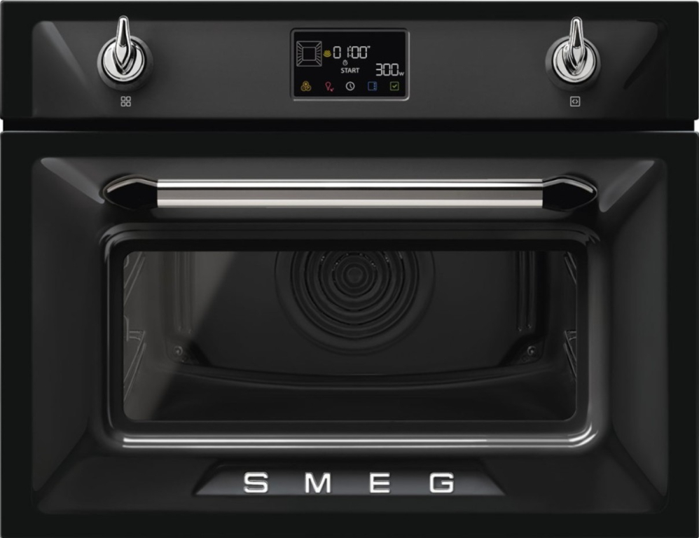 Компактный духовой шкаф Smeg SO4902M1N выполнен в черном цвете. Сочетание классического приготовления с микроволнами разнообразит процесс кулинарии. 11 режимов приготовления подойдут для разных типов блюд. В конце режима готовки раздастся акустический сигнал, чтобы вовремя извлечь готовое блюдо. Паровая очистка облегчит уход за прибором.