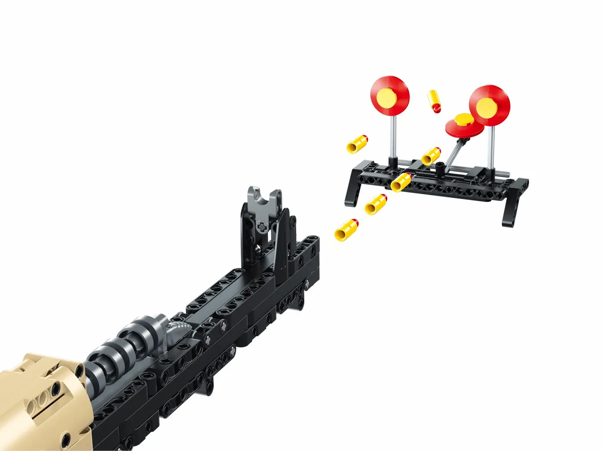 Пулемет собирается из 1073 деталей. В комплекте есть мишень.