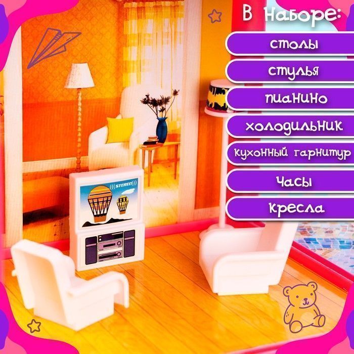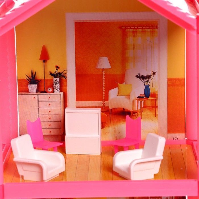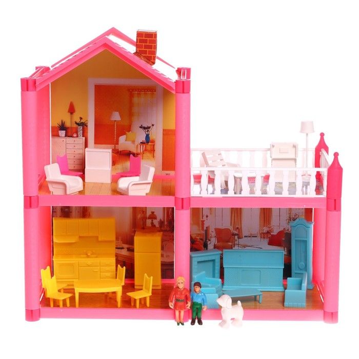 Двухэтажная вилла оборудована всей необходимой мебелью. Дочурка устроит в домике уютную гостиную, просторную столовую и комфортную комнату отдыха, где будет весело играть со своими куколками.