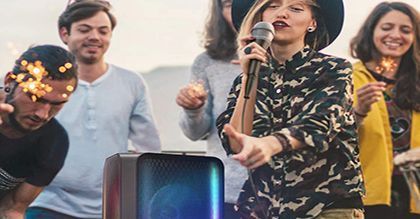 Компактная аудиосистема позволяет не только наслаждаться по-настоящему качественным воспроизведением музыки, но и организовывать караоке-вечеринки благодаря соответствующей функции. При этом ее возможности заметно расширяются за счет встроенного аккумулятора, что даёт до 18 часов автономной работы. Это позволяет использовать колонку практически в любом месте независимо от наличия розетки, наслаждаясь музыкой и караоке где угодно и сколько угодно времени.