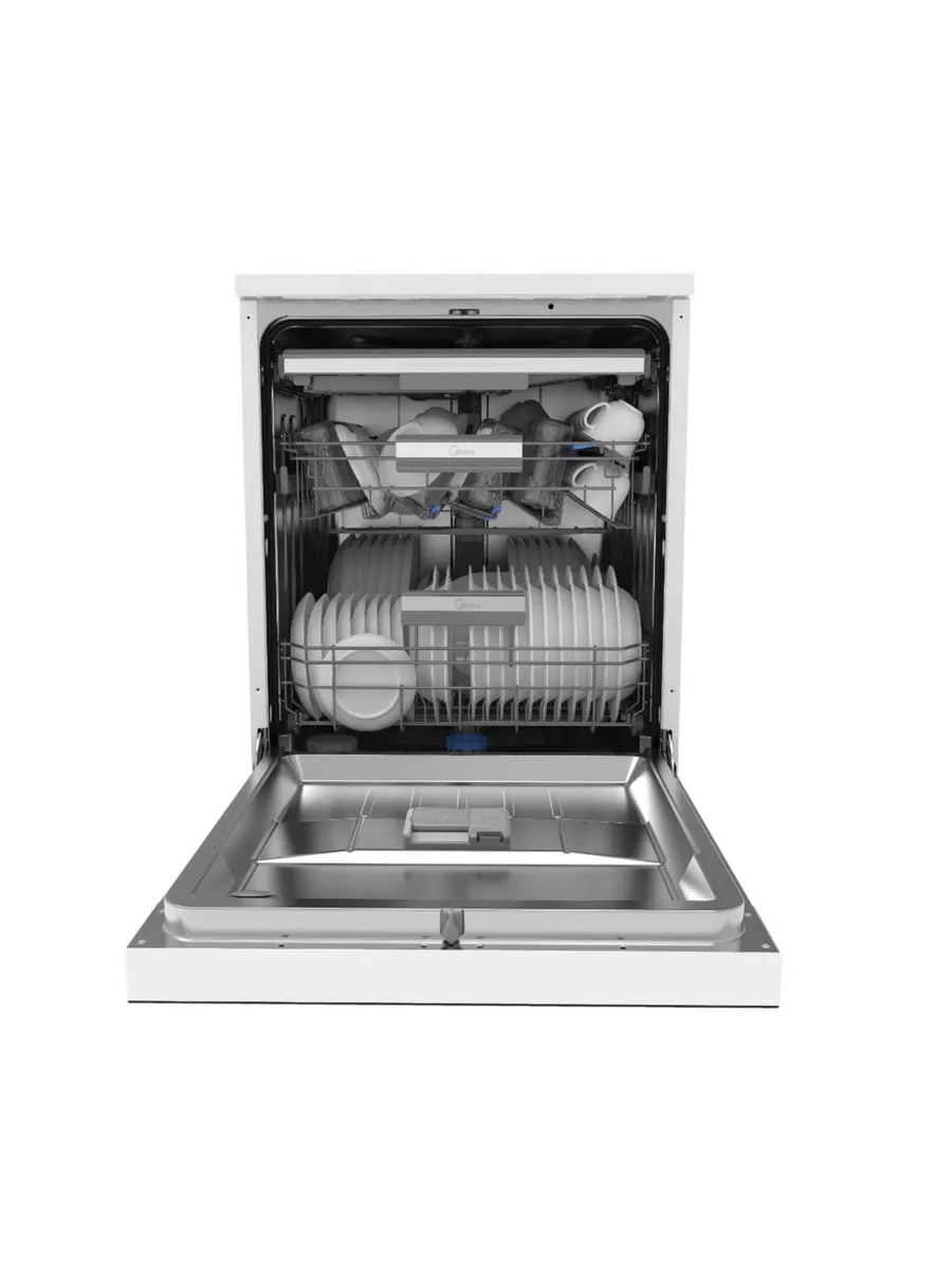 Белая посудомоечная машина Midea MFD60S510Wi оснащена тремя регулируемыми по высоте корзинами и держателями для бокалов для размещения до 14 комплектов посуды. Полная защита от протечек блокирует подачу воды при подозрении на поломку. Верхний разбрызгиватель гарантирует хорошее ополаскивание даже при полной загрузке камеры.