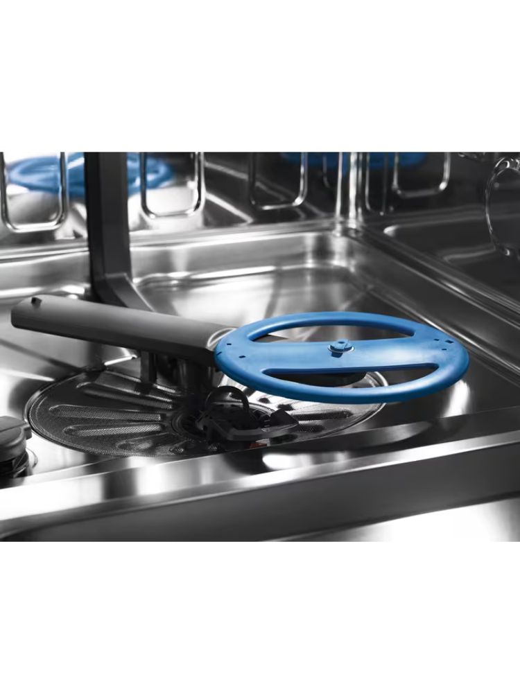 Технология сушки AirDry Technology обеспечивает естественную циркуляцию воздуха после завершения цикла, что способствует быстрому и качественному высыханию без излишнего потребления энергии. Для удобства загрузки предусмотрена регулируемая верхняя корзина, которая сохраняет функциональность даже при полной загрузке. Нижний распылитель с двойным вращением Satellite обеспечивает равномерное распределение воды, что гарантирует тщательное очищение всех предметов. Лоток MaxiFlex для столовых приборов и мягкие держатели SoftSpikes и SoftGrip для чашек, стаканов и бокалов обеспечивают надежное крепление и предотвращают повреждения во время мойки.