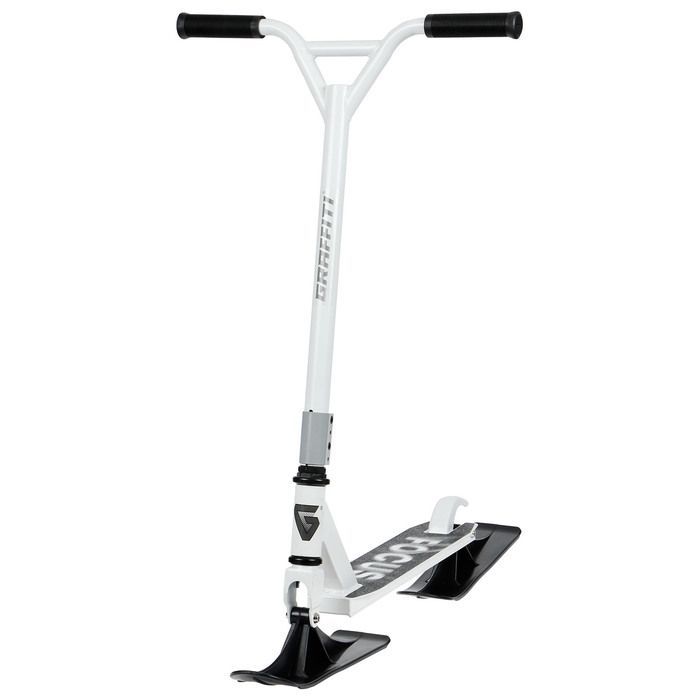 Детский самокат-снегокат — новая модель для летнего и зимнего активного отдыха. Конструкция представляет собой раму самоката, на которую устанавливаются лыжи или колёса. Трюковая рама выдерживает больший вес и более активную езду. Передняя лыжа управляется поворотом руля. Колёса можно установить в любой момент, для этого в комплекте есть всё необходимое.