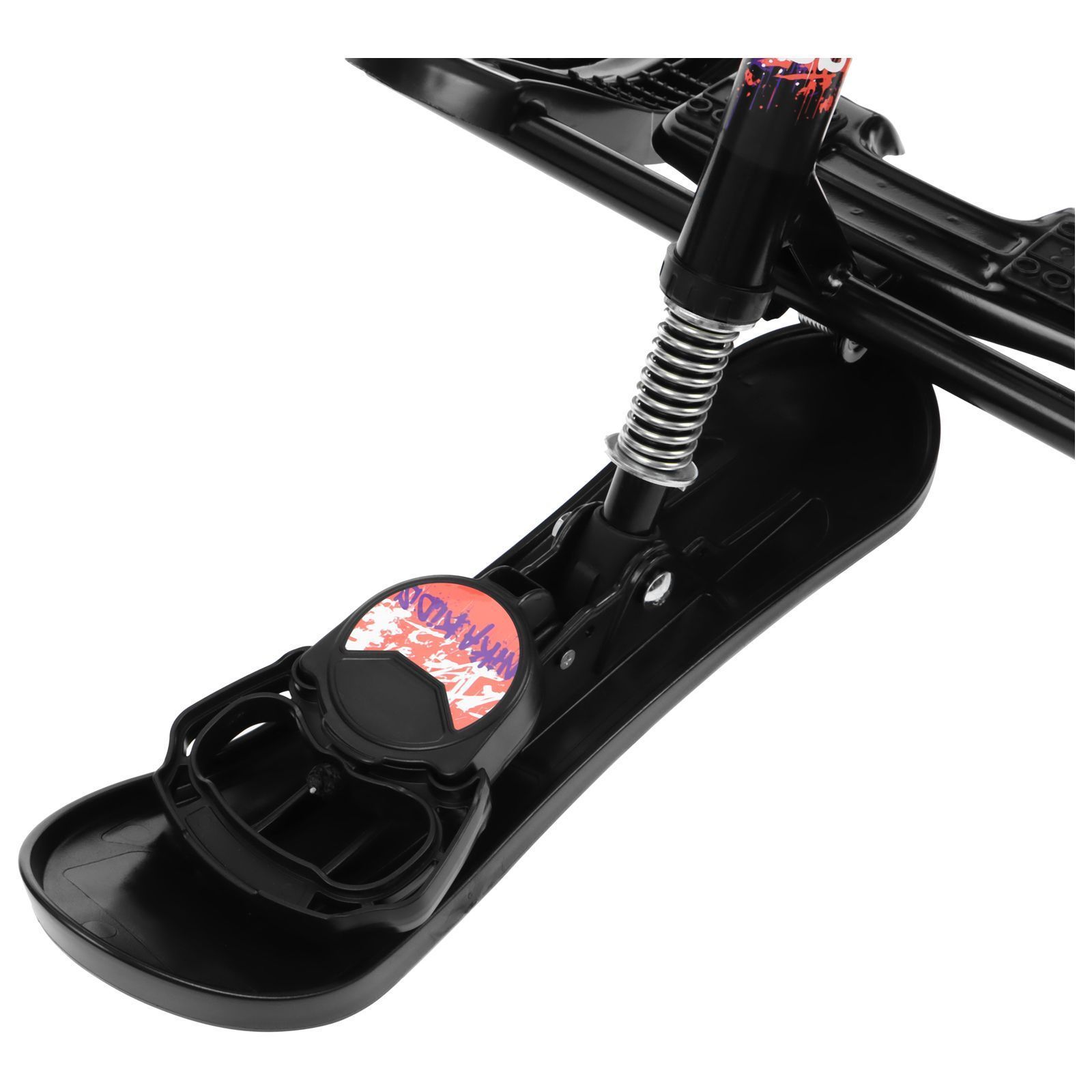 Снегокат предназначен для перевозки детей по плотному снегу, льду, а также для катания с горок. Имеет сварную конструкцию из стальных труб и пластиковых элементов и удлинённое мягкое сиденье. Снегокат оборудован буксировочным тросом с автоматической намоткой. Фонарик на руле осветит дорогу в тёмное время суток. Усиленный широкий тормоз эффективен на обледенелой поверхности и высокой скорости. В комплект входит набор наклеек на снегокат.