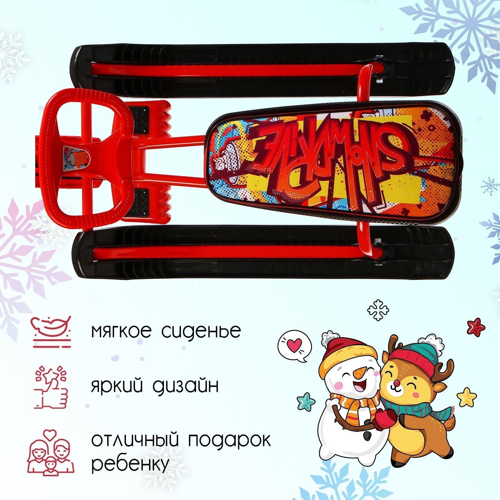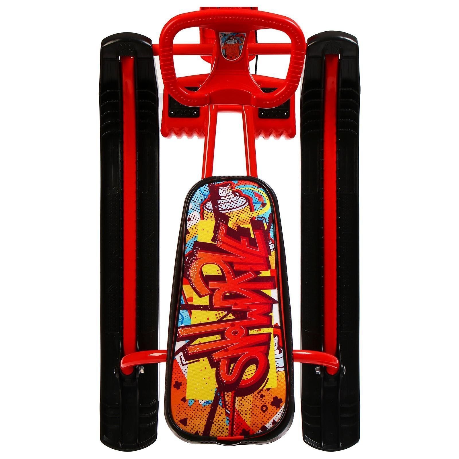 Снегокат предназначен для перевозки детей по плотному снегу или льду, катанию с горок. Имеет сварную конструкцию из стальных труб, пластиковых элементов и мягкое сиденье, обтянутое искусственной кожей с рисунком. Оснащён буксировочным тросом. Усиленный тормоз эффективен на обледенелой поверхности. В комплект входит набор наклеек на снегокат.