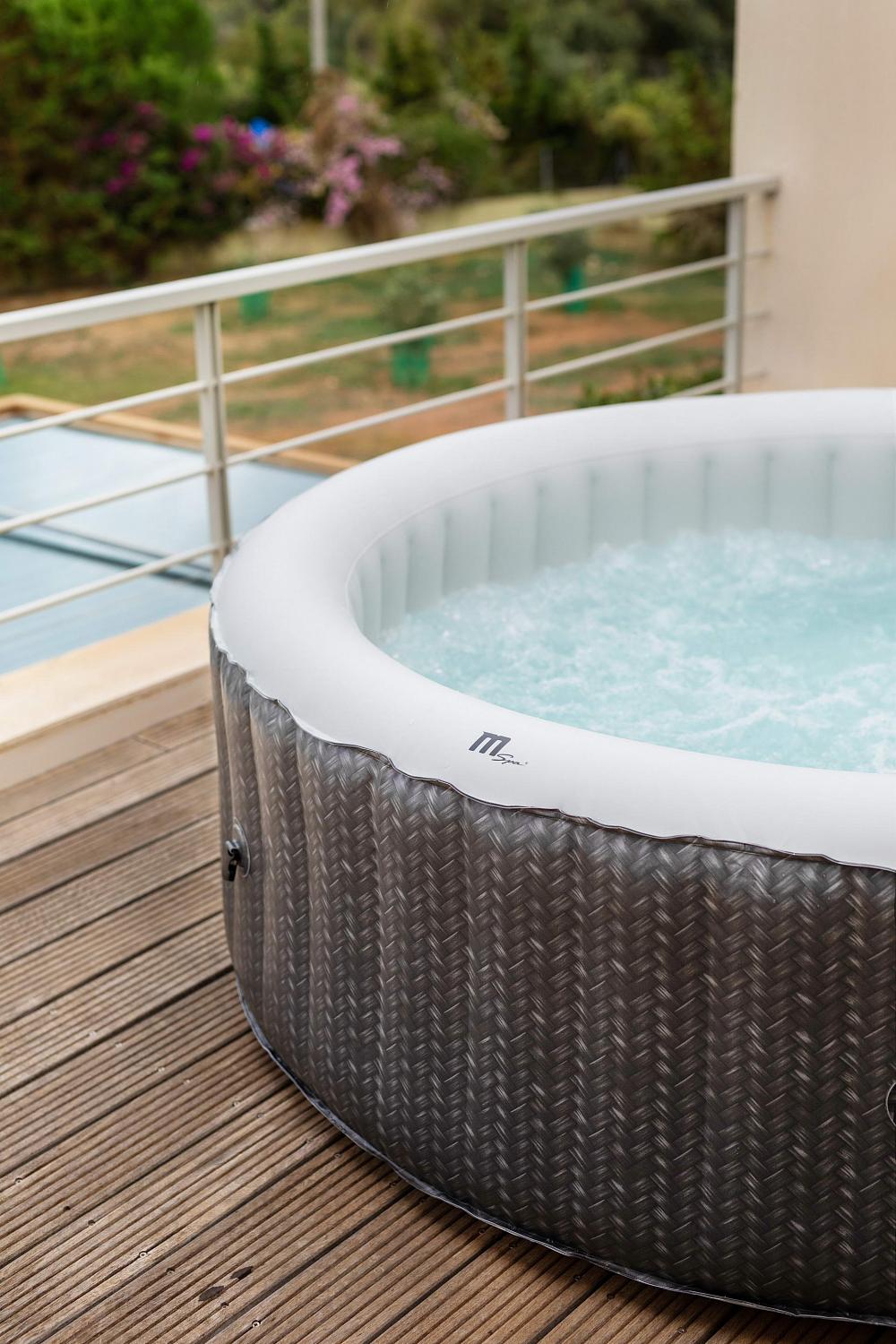 MSPA COMFORT Ottoman Round Bubble Spa – отличный выбор для домашнего СПА-бассейна, подходит для использования как на открытом воздухе, так и в помещении. Вместимость до 6 человек. Корпус (чаша) бассейна из плотного прочного многослойного ПВХ с внутренним антибактериальным покрытием, дно с антискользящей защитой. Чаша обладает устойчивостью к проколам и разрывам. Дизайн стенок в современном роскошном стиле, наружная отделка под ротанг.