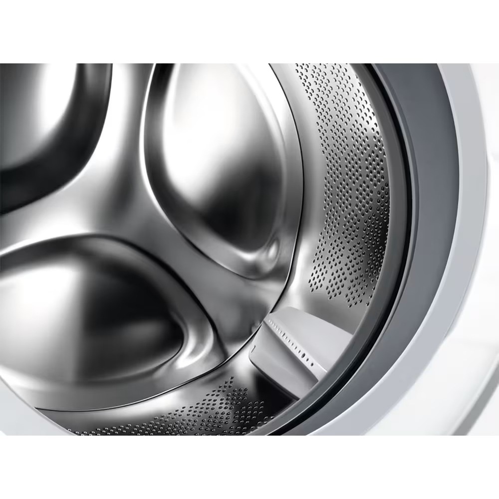 Белая стиральная машина AEG LFR71844SBE с фронтальной загрузкой предназначена для стирки 8 кг белья. Барабан объемом 60 л сделан из нержавеющей стали, поэтому не портится при постоянном контакте с водой и моющими средствами. Благодаря инверторному двигателю машина расходует меньше электроэнергии, а также может дольше работать без необходимости технического обслуживания.