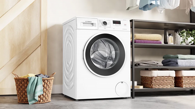 Стиральная машина Bosch WGE03200BY с фронтальной загрузкой до 8 килограммов и максимальной скоростью вращения барабана 1200 оборотов в минуту.