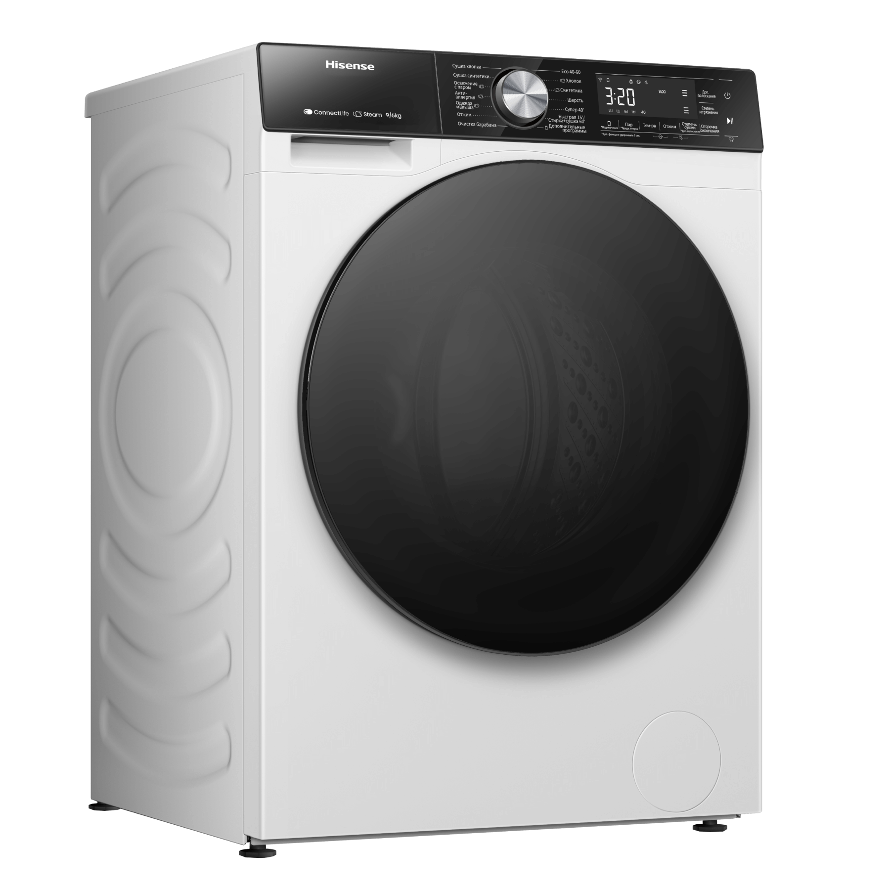 Стиральная машина с сушкой Hisense WD5S9043BWS оснащена барабаном объемом 54 л и вмещает до 8 кг белья.