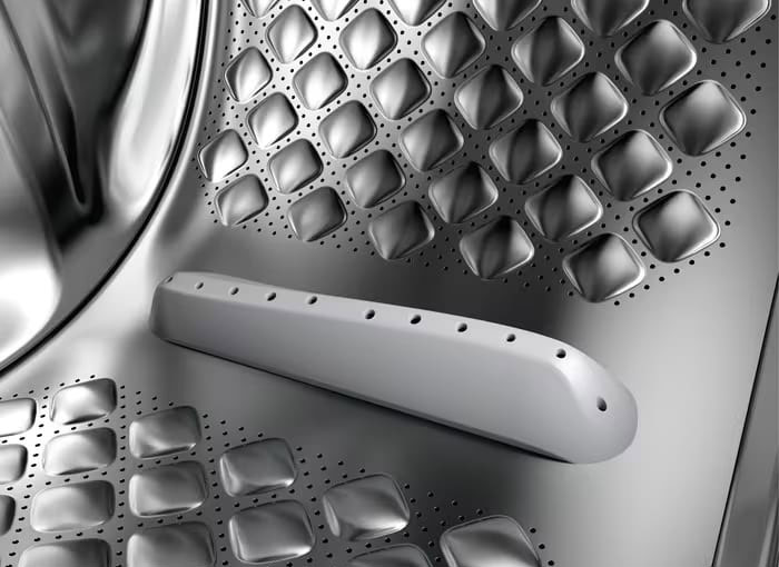 Модель обладает вместительным барабаном из нержавеющей стали, который вмещает до 10 кг белья. Встроенный датчик веса автоматически определяет количество загруженного белья и подбирает оптимальные параметры стирки. Для сушки белья используется технология с помощью теплового насоса SensiDry®, которая позволяет максимально бережно обрабатывать белье, сохраняя его качество и цвет.
