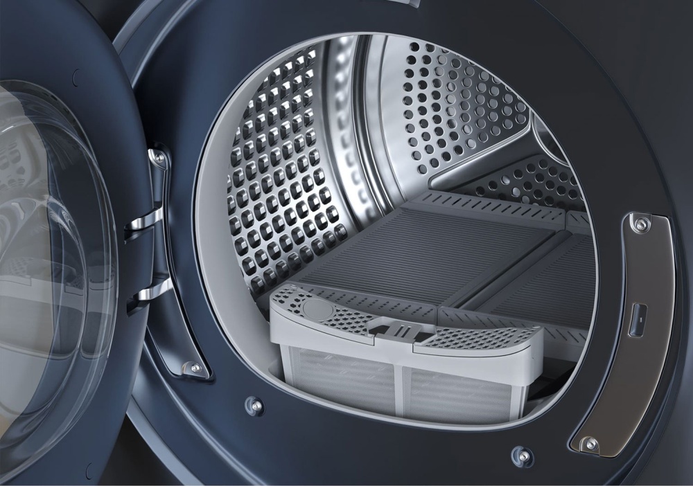 Сушильная машина серии X11.Нужна вашей одежде как воздух. Платформа и дизайн корпуса, продвинутое управление и передовой функционал: технология Ultra Reverse Drum, тепловой насос, 4-слойный фильтр и перенавешиваемая дверца. Усовершенствованная технология реверса: равномерный обдув потоком теплого воздуха, во время которого барабан время от времени меняет направление вращения — бережно высушит самые деликатные ткани, не даст вещам спутаться и распрямит складки.