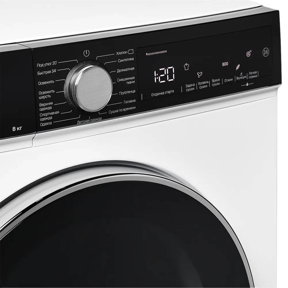 Компактные габариты 84.5×59.5×56.6 см позволяют установить прибор в любом удобном месте, не занимая много пространства. При этом устройство способно вместить до 8 кг белья, что делает его идеальным для больших семей. Объем барабана составляет 100 литров, что обеспечивает оптимальное распределение тепла и равномерную сушку. Модель оснащена функцией антисминания, что помогает сохранить вещи в идеальном состоянии даже после длительной сушки. Дополнительные программы, такие как сушка полотенец, освежение шерсти и сушка детской одежды, делают использование еще более удобным и эффективным.