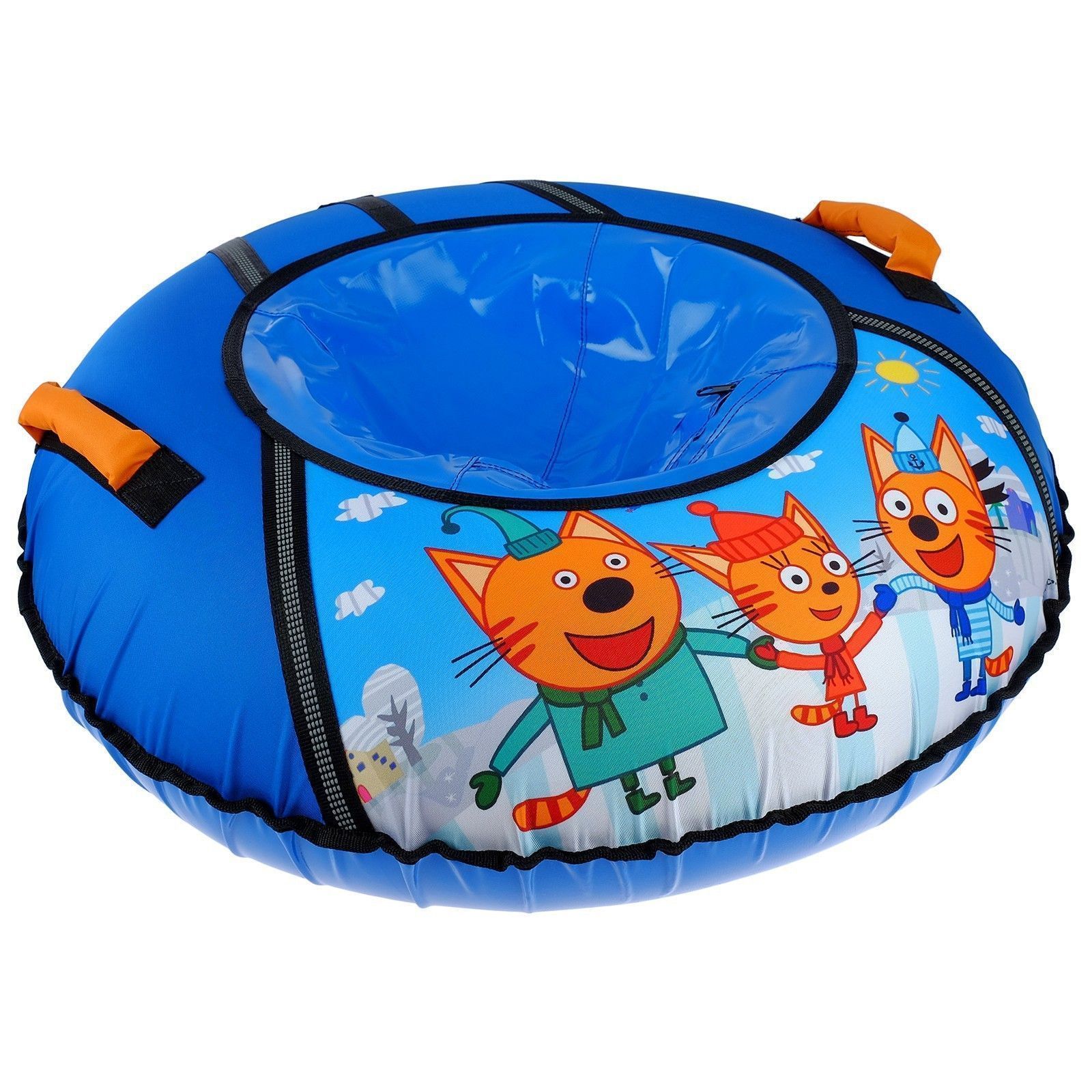 Дно тюбинга изготовлено из автотента ПВХ 610, что гарантирует долгий срок службы и обеспечивает отличное скольжение. Тюбинг оснащён безопасными эргономичными ручками и молнией для быстрого доступа к камере. Он имеет закрытую сердцевину, что исключает попадание снега внутрь. Фактический размер накачанного тюбинга зависит от температуры внешней среды и давления в камере. Для тюбинга подойдёт камера 14 дюймов. Предназначен для детей от 3 лет.