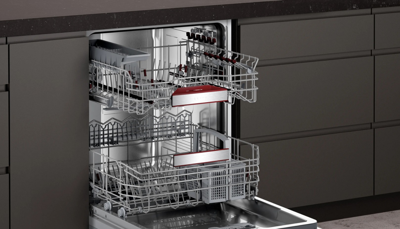 - три корзины VarioFlex, легко переставляющееся под посуду любого размера;