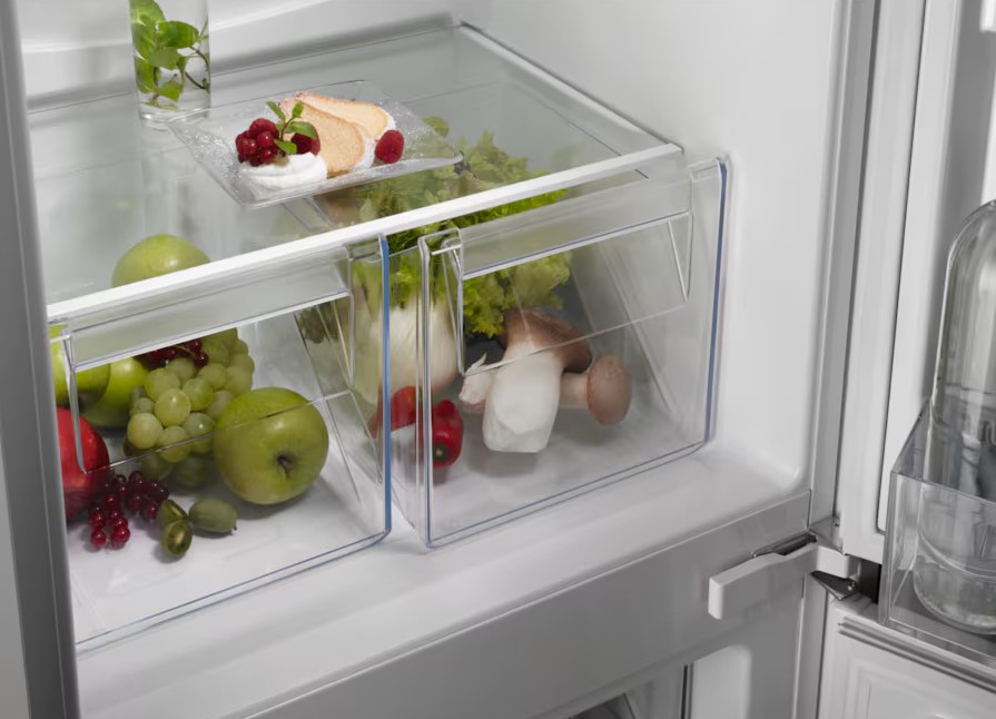 Морозильное отделение имеет систему охлаждения NoFrost, которая предотвращает образование инея и мороза, что значительно облегчает уход за устройством. Система размораживания также автоматическая. Производительность замораживания составляет 4.5 кг в сутки, что позволяет быстро заморозить большое количество продуктов.