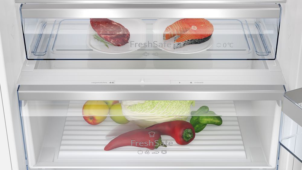 - Раздельная регулировка температур и зона FreshSafe для свежих продуктов.